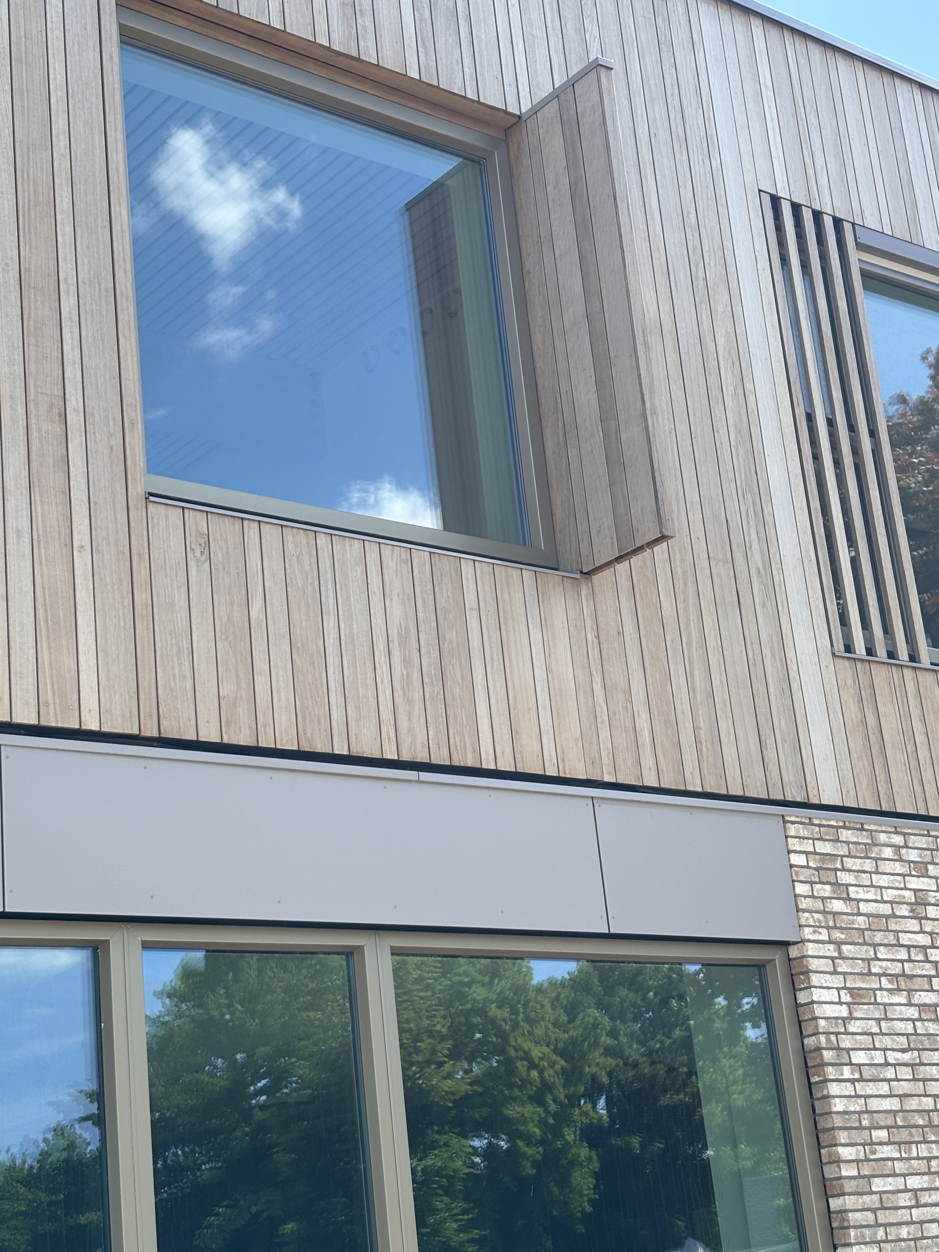 “In de uitwerking van het ontwerp is gezocht naar passieve slimmigheden. Dit om er voor te zorgen dat we zo min mogelijk met installaties hoeven te maken. Deels helpt dat door de compacte gebouwvorm. Deels ook door goed na te denken over de oriëntatie van de lokalen. Deze liggen zo min mogelijk op het zuiden en hebben zoveel als mogelijk een oriëntatie op het noorden en westen. Verder is het gebouw uitgerust met zomernachtventilatie en lamellen in de gevel. Dit alles met als doel om de temperatuur in het gebouw niet onnodig op te laten lopen in de periodes dat de zon zich laat zien”, legt Bart uit.